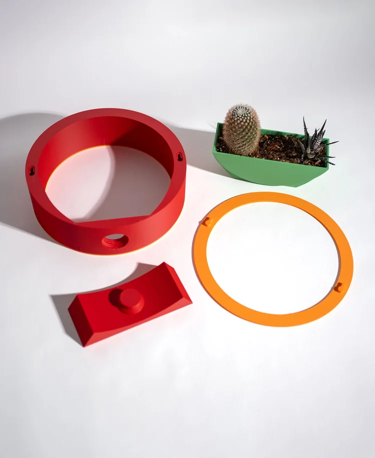 Since the drainage hole is plugged up by the tabletop stand, you can water your plants by removing the planter from the circle and watering in the sink (this is what I do with most of my plants anyway). The false back snaps into the keyhole slots to hide them and make it so the planter can be placed somewhere where both sides are visible.